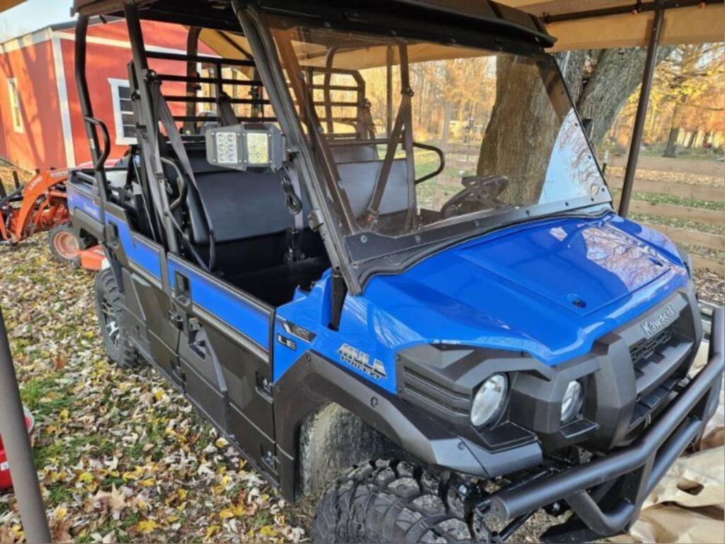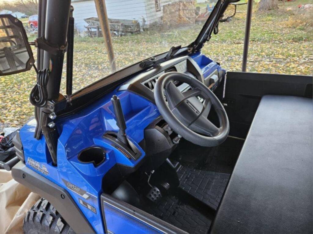 Like new!! Only 34 miles. Side-by-side, 3-6 passengers, large cargo bed, clean, windshield, lighted side mirrors, Electric Power Steering, Vibrant Blue color, used very little, tires. This utility vehicle will give you years of use and still under warranty.